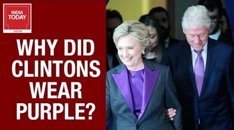 Hillary Clinton takes stage with her husband Bill Clinton to acknowledge Trump’s victory…both wearing purple, and now you know why.