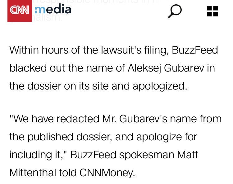 Not known to the American people about the Trump-Russia Dossier, though, this report explains, is that it, also, alleged that Hillary Clinton and Democratic Party computers were broken into with the aid of companies owned by Russian technology billionaire Aleksej Gubarev—who immediately sued BuzzFeed and its editor Ben Smith for publishing these lies calling it “perhaps one of the most reckless and irresponsible moments in modern journalism”—and that, within hours of this lawsuit’s filing, saw BuzzFeed blacking out the name of Aleksej Gubarev from the Trump-Russian Dossier on its site and apologizing to him—with BuzzFeed spokesman Matt Mittenthal stating: “We have redacted Mr. Gubarev’s name from the published dossier, and apologize for including it.”