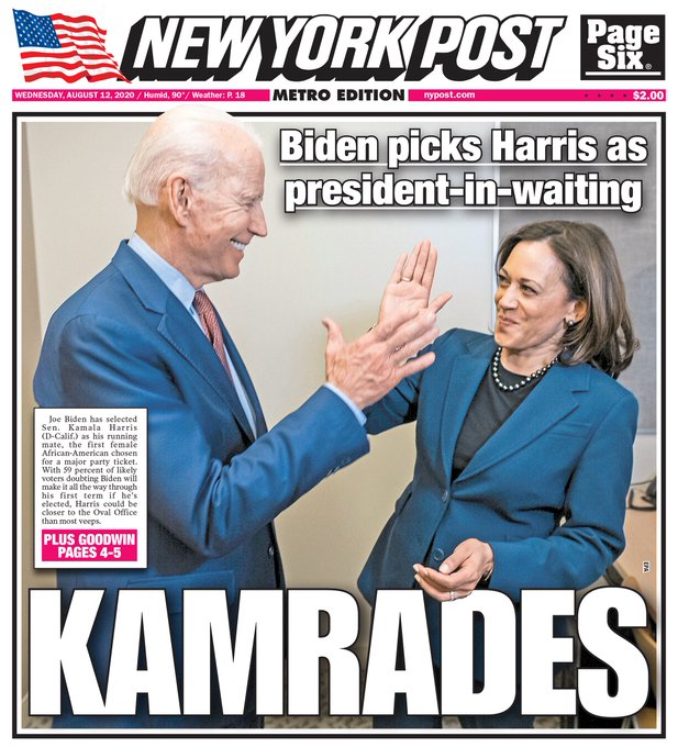 In an America where it’s now being grimly observed: “There is growing worry these days about whether or not we are headed for another civil war, and whether the divisions in American society are as bad as they were in the run-up to what is still the bloodiest war in American history…In fact, there is no comparison between the divisions between Americans today and in the run-up to the Civil War…The ones today are far worse”, this report concludes, left nearly alone to keep telling the truth about fake black socialist Kamala Harris is President Trump—who yesterday while noting that Kamala Harris was “nasty” and “disrespectful” to Joe Biden, said “She Was My Number One Draft Pick”—after which President Trump branded the Biden-Harris ticket “Slow Joe and Phony Kamala” and released a campaign video about them that was viewed over 3-million time in its first hour of release on social media—and then saw President Trump warning the American people that if the Biden-Harris ticket wins, “You’ll Have to Learn to Speak Chinese”—a reference to the Communist Chinese takeover of America should Biden and Harris win—though this doesn’t seem likely to occur according to top American investor genius Jeff Gundlach, “Who Correctly Called The 2016 Presidential Election, And Predicts Trump Will Win Again”.