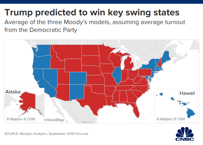 With US House Speaker Pelosi and her socialist Democrats now seeing their panic level rise because of the criminal investigation into their intelligence agency led coup plot against President Trump, this report concludes, their erupting into full unhinged meltdown rage is because after 1,000 days in office, Trump holds a 50% approval rating with likely voters—despite the continued barrage of fake news and vicious media attacks since he won the 2016 election and this latest impeachment scam—which stands opposed to Obama’s approval rating at the same time in his presidency that was 45% despite having a fawning media his entire tenure as president—an astonishing popularity level for Trump who’s being aided by his nation’s working class citizens who are flocking to his Republican Party because these socialist Democrats are only supporting the rich—all of whom have seen the highest wage growth in their lives under the Trump economy—all of which explains why the prestigious election polling firm Moody Analytics—who failed only once in their Presidential predictions since 1980—has now declared that Trump is on his way to an easy win in 2020—a “win” the world prays will be accomplished at the ballot box like it’s supposed to be—but if not, will, beyond all doubt, be secured like all third-world coups end, in blood.