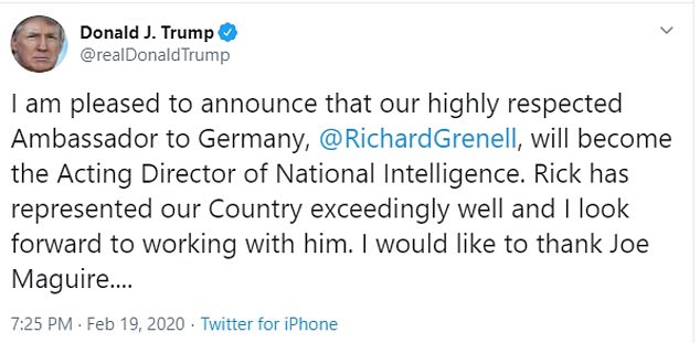 According to this report, as the Acting Director of National Intelligence, newly appointed Ambassador Grenell will serve as head of the seventeen-member United States Intelligence Community while directing and overseeing the entire National Intelligence Program for America—the exact same intelligence apparatus, while under the control of President Obama, which published a made-up fairy tale screed titled “Background to “Assessing Russian Activities and Intentions in Recent US Elections”: The Analytic Process and Cyber Incident Attribution” on 6 January 2017, just 14-days prior to when President Trump was sworn into office on 20 January 2017—and upon its publishing, formed the basis for repeated attempts to overthrow Trump—all of which ended in failure and are now the subject of a vast criminal investigation being conducted by feared US Attorney John Durham—and in the hours just prior to Trump’s appointment announcement yesterday, saw both Grenell and Durham being aided in this criminal investigation by a US Federal Court in Washington that ruled the Office of the Director of National Intelligence properly withheld certain documents relating to Russian interference in the 2016 US presidential election.