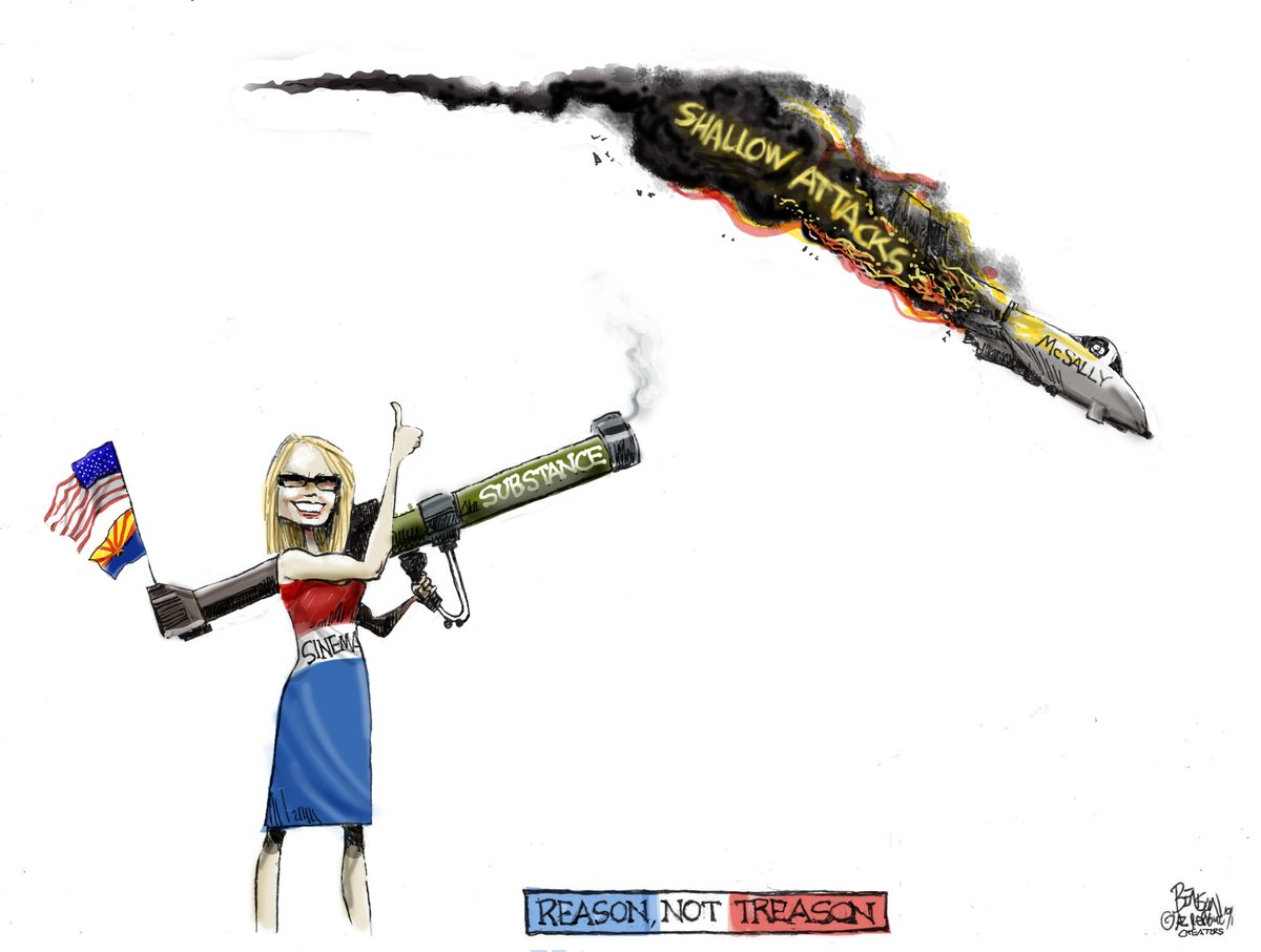 Hillary Clinton supporting Arizona Republic newspaper demonically depicts Satan-inspired Kyrsten Sinema shooting down plane of war here Martha McSally