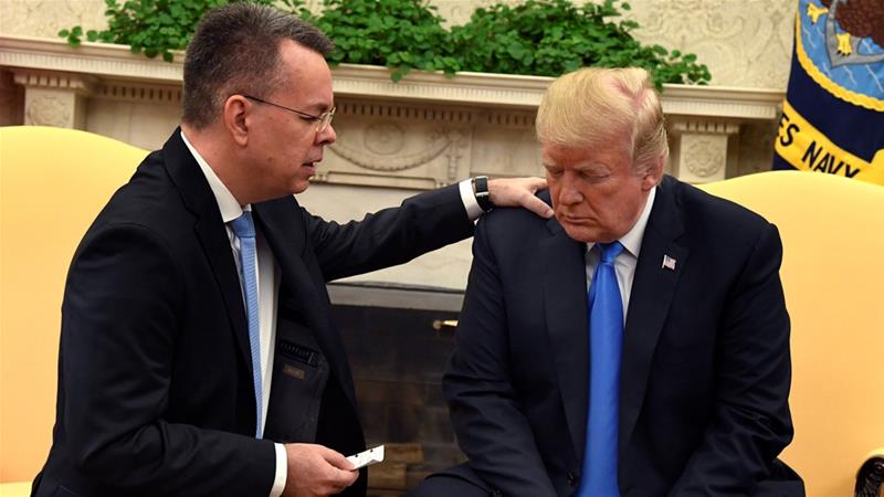 Freed from brutal Islamic captivity Pastor Andrew Brunson kneels in prayer before President Trump in White House Oval Office on 13 October 2018