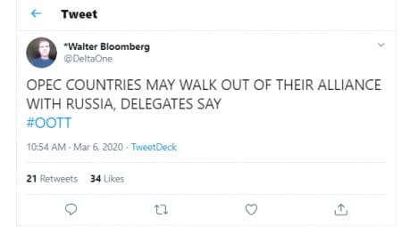 Over the past two months, however, this report details, China, the world’s largest importer of oil from OPEC+ nations, drastically cut its energy needs in response to the coronavirus outbreak—thus creating a global glut of unused oil that’s slashed its price to near 10-year lows—that then led OPEC, on 5 March, to announce that they had agreed to drastically cut oil production in order to stabilize its price—and agreement, however, OPEC made the day before Russia joined these talks.