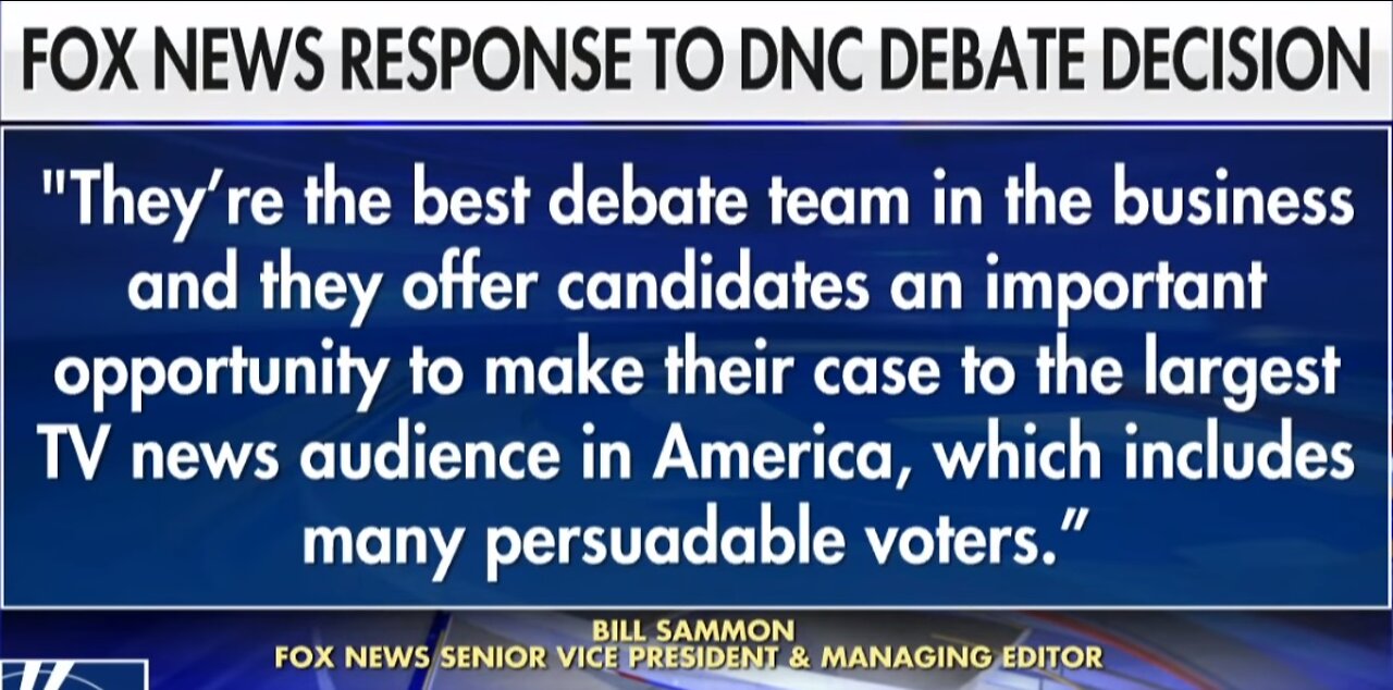 To the Democrat Party having any legal and/or valid reason to ban Fox News from hosting any of their debates, this report details, none exist—as evidenced during the 2016 US presidential election debate season that saw NBC News financial network CNBC host John Harwood colluding with Hillary Clinton as to what questions he should ask her—and CNN host Donna Brazile having to admit she secretly provided Hillary Clinton with debate questions—while at the same time, it was actually Fox News host Megyn Kelly who hammered Trump on the presidential debate stage.