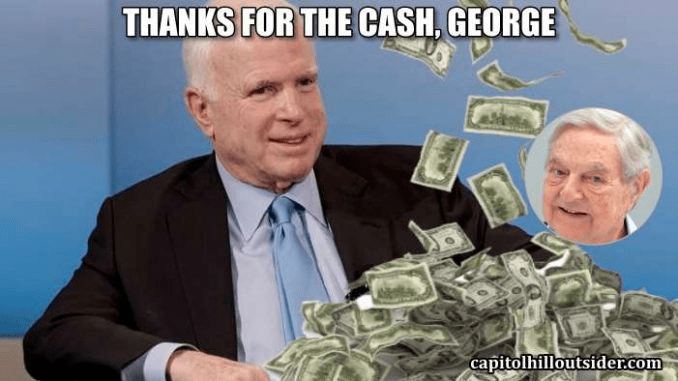 Using the money obtained by him from Soros Fund Management, this report continues, Senator McCain paid $1 million to a leftist political opposition organization named Fusion GPS to create the “Russian Dossier” to be used against President Trump—and that was founded by former Wall Street Journal reporter Glenn Simpson—who has longstanding ties to both Hillary Clinton and the Obama regime.