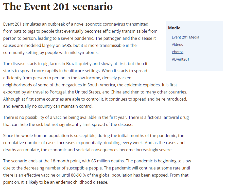 In October-2019, world’s 2nd richest man Bill Gates gathers socialist elites to The Event 201 Scenario to simulate a global coronavirus pandemic (above)…
