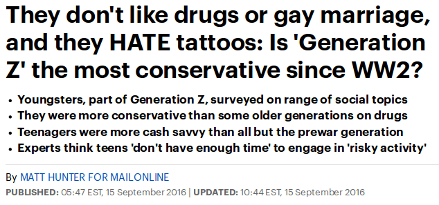 To the greatest nightmarish fears the American leftist-communist elites could have ever imagined, this report continues, Generation Z is now being described as the most conservative generation the US has known since World War II—and who among their many attributes is their detesting of drugs and gay marriage, and their absolute hatred of tattoos.