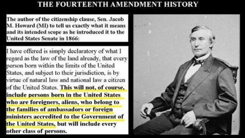 Likewise, this report continues, President Trump has just fired a shot straight into the heart of these globalist dreams to change America forever by overrunning it with foreigners by his declaring that he will sign an Executive Order stating that babies born on US soil without citizen parents will no longer become citizens (called birthright citizenship)—and fulfils his vow to the Americans that he will govern their nation by the Constitution—and in this case applies to their 14th Amendment that was created in 1866 after the Civil War by President Abraham Lincoln and US Senator Jacob M. Howard—and whose meaning of Senator Howard clearly stated: