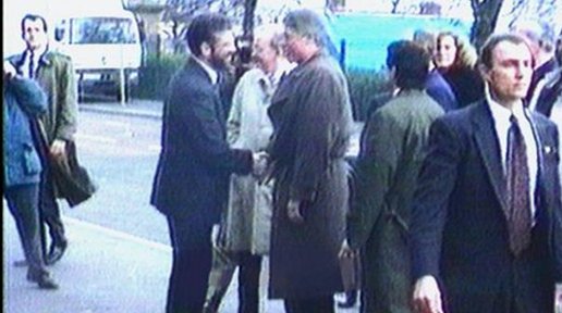 SVR surveillance photo shows President Bill Clinton greeting Northern Ireland terror leader Gerry Adams (both above shaking hands) in Belfast-Northern Ireland in 1995.