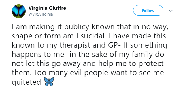 Though this report doesn’t clearly state in its unclassified section that the SVR informed the FBI about the death threat against Virginia Roberts, its safe to assume this happened—as just a few days later, the CIA notified the SVR about an impending terrorist attack due to take place in St. Petersburg—a very common quid pro quo (equal for equal) occurrence existing for decades between Russian and American foreign intelligence agencies—that frequently sees the SVR giving intelligence to the CIA for the FBI, and, likewise, the CIA giving intelligence to the SVR who gives it to the FSB.