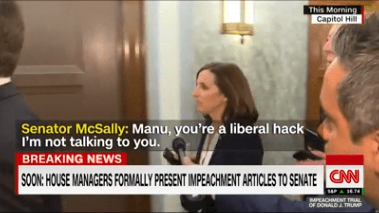 …then sends impeachment papers past Republican Party US Senator Martha McSally confronting liberal hack CNN reporter…