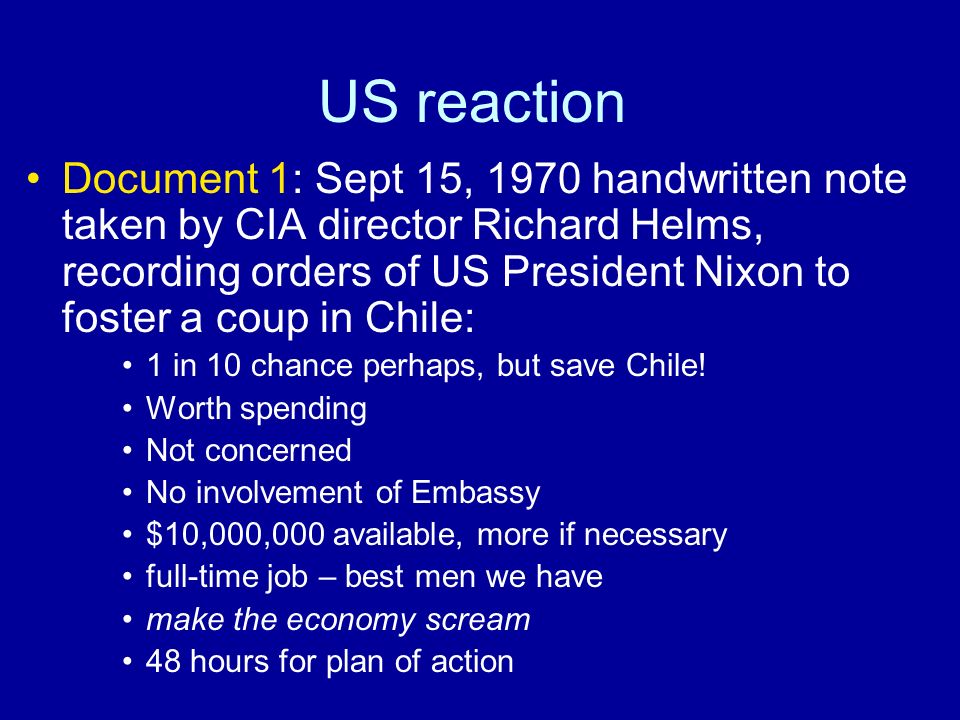 “Recall the U.S. regime-change operation in Chile from 1970 to 1973. Somehow concluding that the Chilean people’s election of a self-avowed Marxist as president was a threat to U.S.“national security,” U.S. officials targeted Chile for a U.S. regime-change operation. As part of the regime-change plan, the CIA did everything it could to make the Chilean economy “scream.”