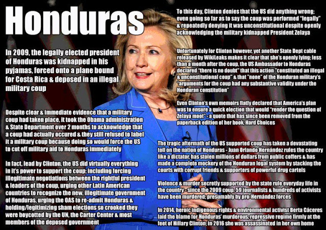 “The “crime” for which the United States used to justify their overthrow the Honduran government was due to its President Manuel Zelaya having sought to hold a non-binding, nationwide poll on whether to include a fourth ballot box in their 2009 elections to usher in a National Constituent Assembly for the rewriting of the country’s constitution—and whose effort was intended to democratize that country’s laws that favored the Honduran elite.”