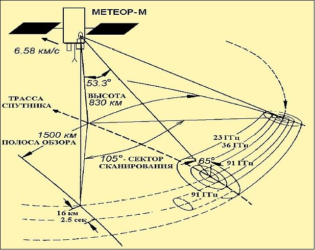 Scanning geometry of the MTVZA-GY radiometer now able to detect radio waves from bacteria (image credit: Roshydromet)