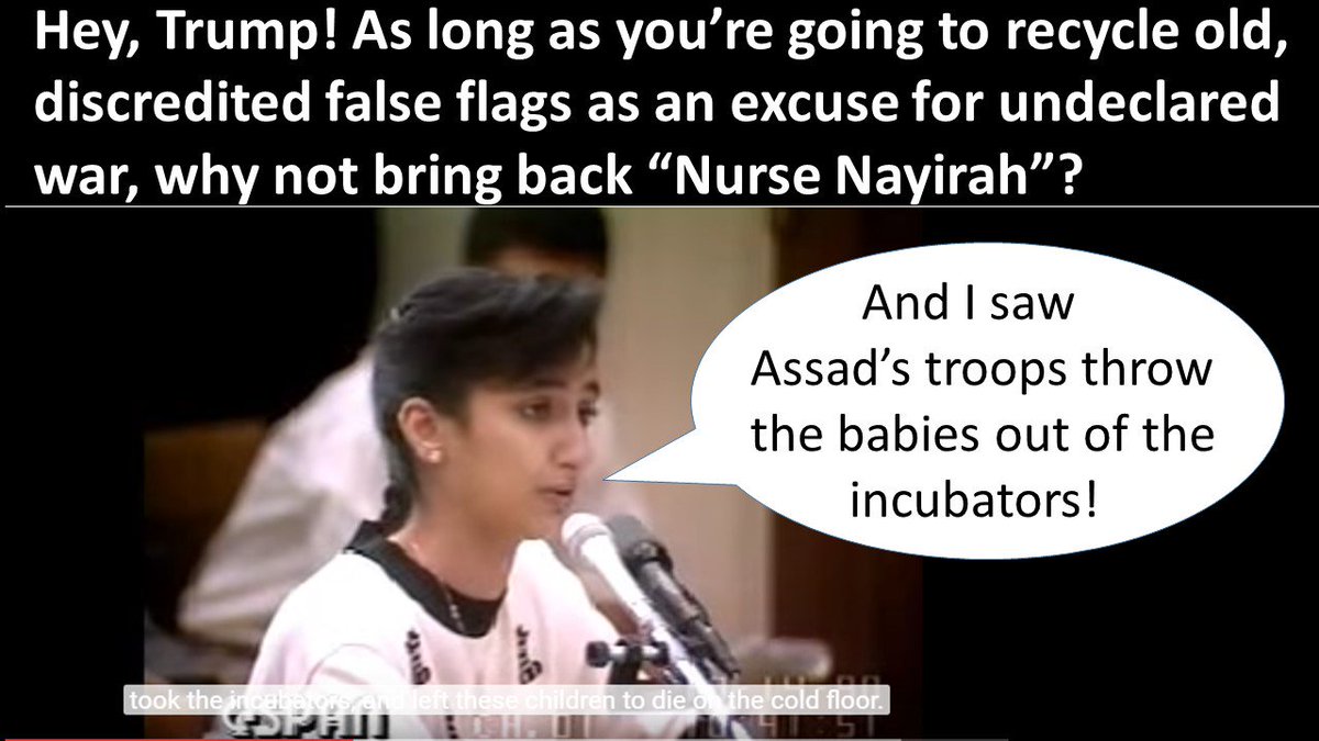 The “atrocity propaganda” long used by the West to foment their wars, this report details, and whose past examples include them, during World War I, falsely claiming that German soldiers were deliberately mutilating Belgian babies by cutting off their hands, and during the Gulf War falsely claiming that Iraqi soldiers had snatched babies out of hospital incubators and threw them on the floor to die in Kuwait—to just name a couple of hundreds of examples.