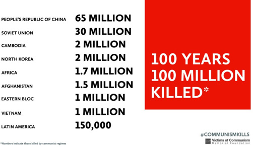 In the non-classified portions of today’s Security Council report that can be written about this extraordinary meeting between all of these top Russian and US intelligence and defense officials, one of the most important were the Russians informing their American counterparts that theCommunist Party of the Soviet Union is outlawed in the Russian Federation, and anyone found promoting its ideology, no matter where found in the world, are liable to high treason charges under Russian law—and is due to the Wall Street Journal, last year, aptly stating that its only legacy is “100 Years of Communism—and 100 Million Dead”. [Note: This report says that SVR Director Naryshkin actually put this Wall Street Journal directly into CIA Director Pompeo’s hands.]