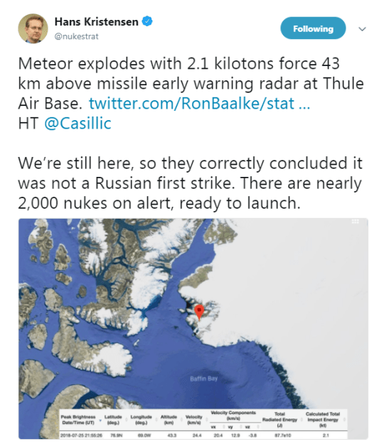 American people remain oblivious to how fast space rock blast can ignite World War III