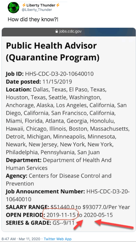 With it never being publicly acknowledged by either the US or NATO as to whom ordered this attack on Saudi Arabia, this report continues, it’s critical to note that US Secretary of State Mike Pompeo traveled to Saudi Arabia in the wake of this attack to hold a secret meeting with its leader Saudi Crown Prince Mohammed bin Salman—a September-2019 meeting followed by many other such ones between US and Saudi officials—but none more important than the November-2019 meeting held between Saudi Crown Prince bin Salman and CIA Director Gina Haspel—made important because shortly after feared CIA Director Haspel returned to the United States from Saudi Arabia, the United States Centers for Disease Control, on 15 November 2019, posted a little noticed opening for jobs titled Public Health Advisor (Quarantine Program)—an immediate call made months ago for quarantine experts, all of whom must have their resumes in by 5 May 2020—and whose immediate postings for quarantine actions will be in: