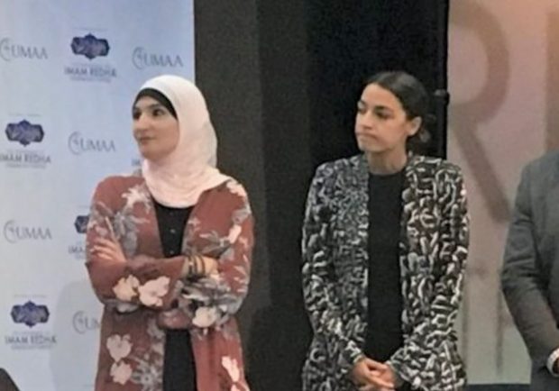 Radical Islamic terror supporter Linda Sarsour (left) proclaims US Congresswoman Alexandria Ocasio-Cortez (right) to be “the hope we’ve been waiting for”