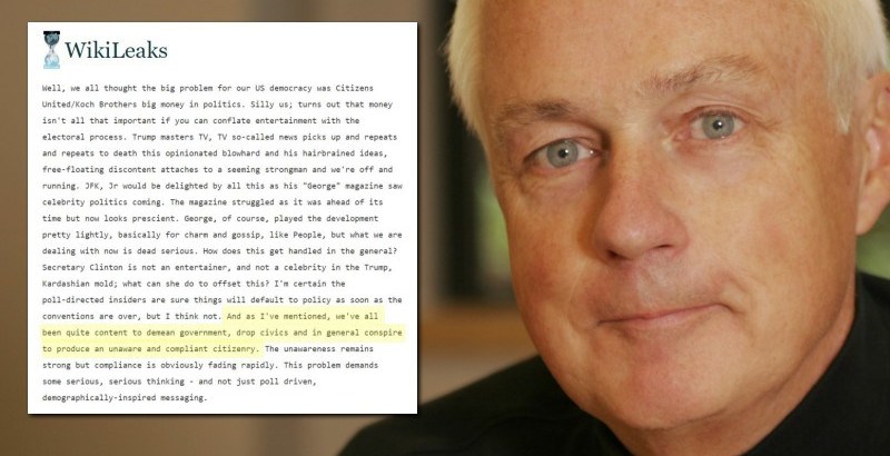 The Democrat Party oligarch class in America, this report continues, controls vast swaths of their nation’s media companies, high-tech social media giants and television-movie-music conglomerates—while Republican Party oligarchs control nearly all means of production, banks, healthcare, transportation and energy production—and whose major fault line between sees the Democrats needing an ever expanding base of government dependent, uneducated low-wage citizens to keep them in power—while the Republicans need an ever expanding base of highly educated and skilled citizens to keep their power base secure—and whose fault line between was fractured in 2016 when the Democrats watched in horror as their base of voters woke up the con job being foisted upon them and turned to Trump to protect them—most particularly after Wikileaksrevealed a top Hillary Clinton operative warning: