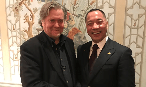 Former US Naval Intelligence officer Steve Bannon (left) and his radical Chinese billionaire backer Guo Wengui (right)