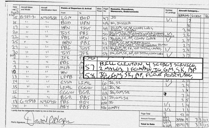 …and former President Bill Clinton, who flight logs prove (one depicted above) visited this notorious child sex slave island at least 10 times.
