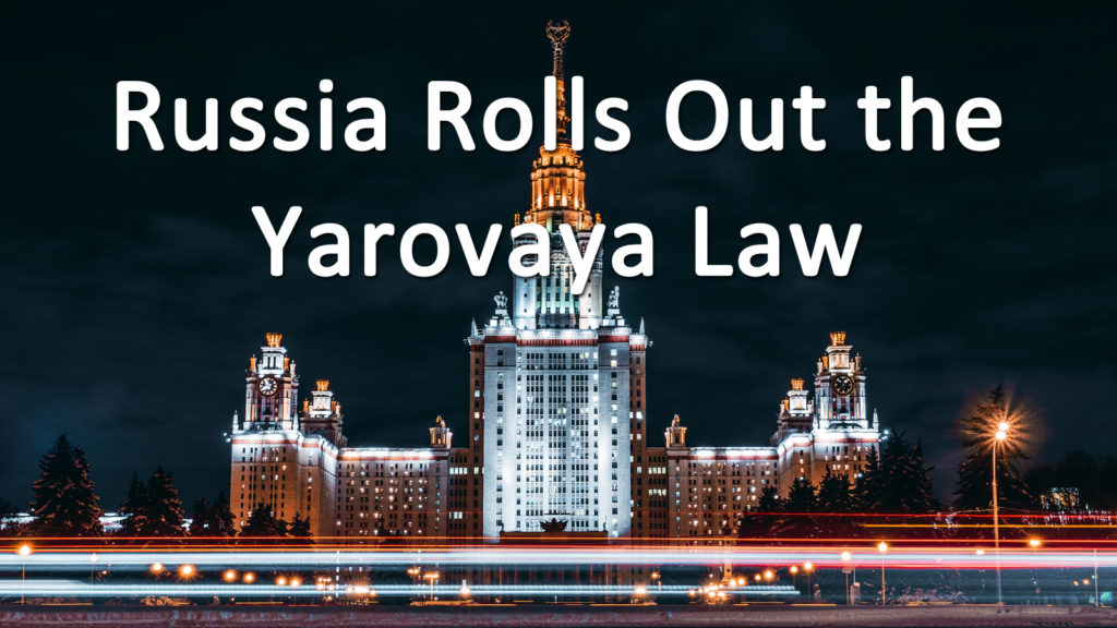 In the aftermath of having to declare a “Holy War” against Islamic State terror forces, who were annihilating Christian peoples throughout Syria and Iraq while being protected by the West, this report continues, Deputy Chairman of the State Duma Irina Yarovaya began to amend pre-existing counter-terrorism laws and separate laws regulating additional counter-terror and public safety measures—collectively known today as “Yarovaya Law” that President Putin signed into force in 2016.