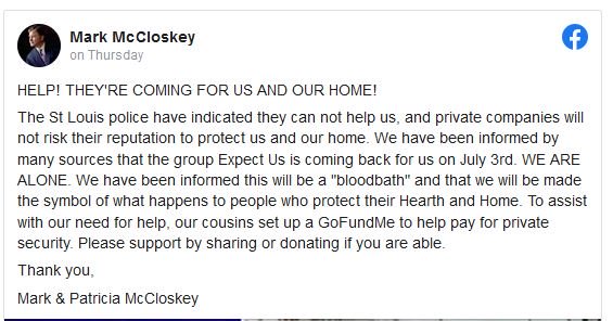 A white couple in the socialist Democrat Party stronghold city of St. Louis-Missouri—whom the police were ordered not to defend when they were set upon by a socialist mob who threatened to kill them and burn their home down—and whose fundraising page on GoFundMe to hire private security was taken down without explanation.