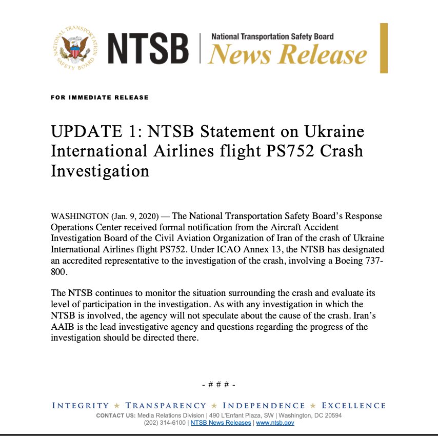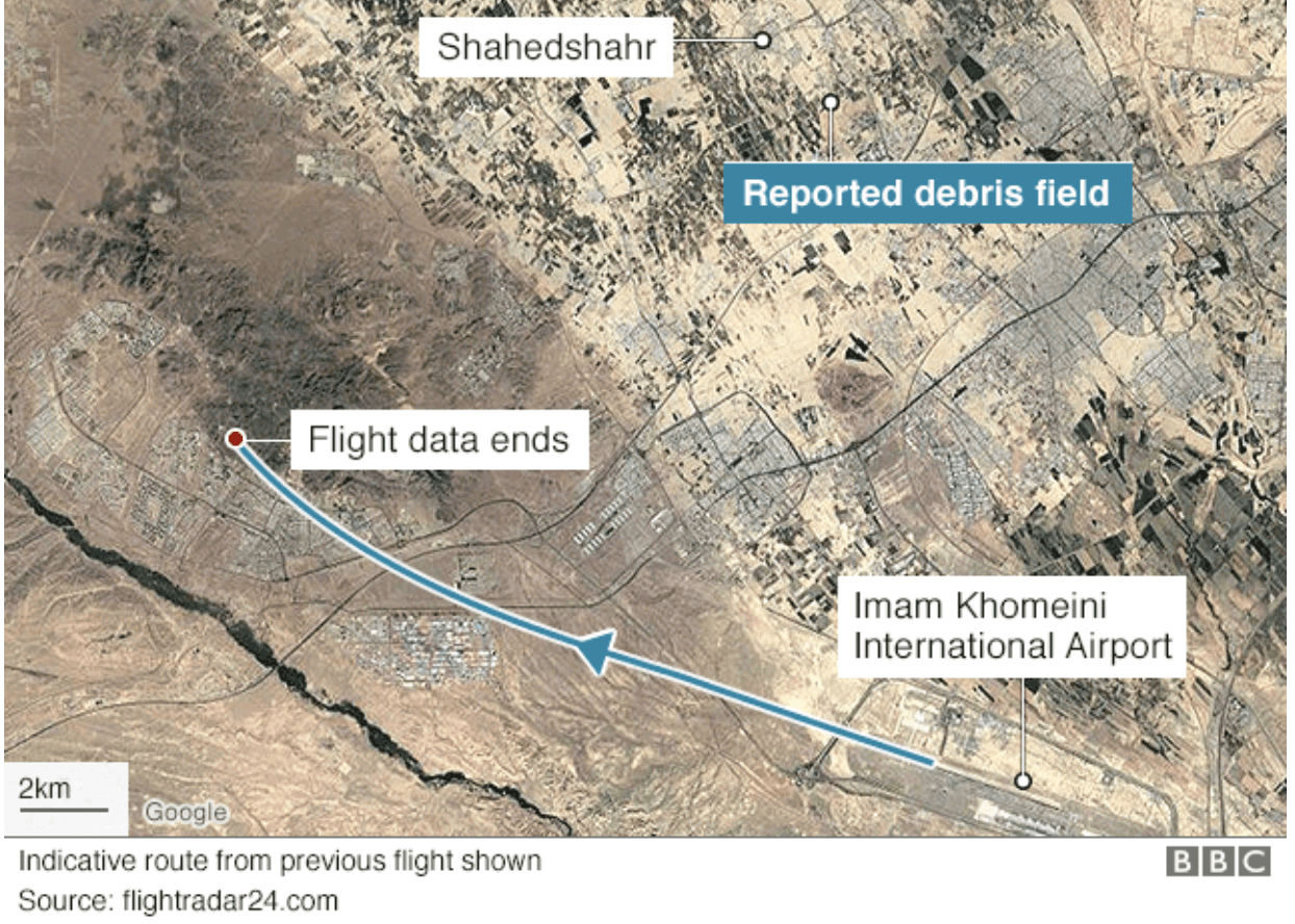 Most deceitful about the Western leftist mainstream propaganda media reporting on this Ukrainian plane disaster, this report concludes, are their citing unnamed Deep State officials absurdly claiming that a US military satellite “detected the heat signature of two missiles as they approached this airliner”—which if true, would have seen those two Tor Missile System high-explosive weapons instantly obliterating this plane and its falling straight down in thousands of pieces out of the sky—that obviously didn’t occur as the debris field proves—and the only heat signature detected by MoD satellites was when this plane exploded after hitting the ground—and which the US National Transportation Safety Board (NTSB) can confirm for itself as it has accepted Iran’s invitation to participate in the investigation into the Ukrainian jetliner crash—an Iranian invitation also extended to the Boeing Company so they can dispatch its own representative to participate in the process of reading the black box data—black box memory units that withstood the crash, but were damaged as expected in such a catastrohpe—none of which would be occurring if Iran had anything at all to hide—and as so stated by the Head of Iran Civil Aviation Organization Ali Abedzadeh who told the simple truth: “The plane caught fire three minutes into the flight, according to what the witnesses have reported and the data collected from the parts of the airplane…The pilot tried to return the airplane at the altitude of 8,000 ft., but due to the fire, the airplane crashed and exploded”.