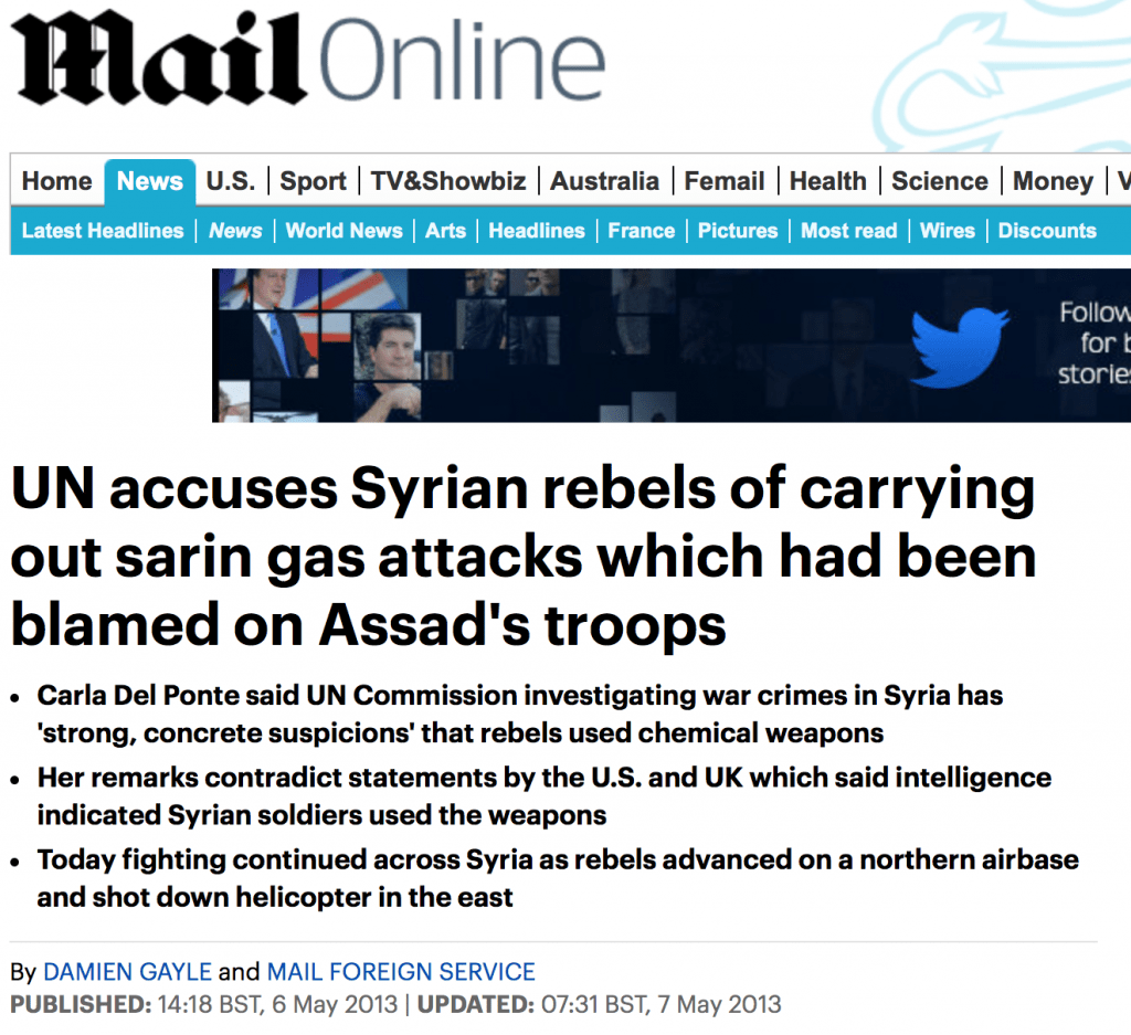 The United Nations has always known that US-backed rebels in Syria are the only ones conducting chemical attacks