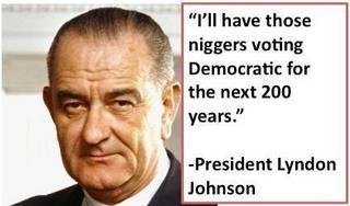 The true and demonic purpose of President Johnson creating this new “Democratic Plantation” system in America, this report notes, he admitted by declaring “I’ll have those niggers voting Democratic for 200 years”—a quote some say is “unproven”—but can be proven as unequivocally being true based on other racist statements he made that include his saying “These Negroes, they’re getting pretty uppity these days and that’s a problem for us since they’ve got something now they never had before, the political pull to back up their uppityness. Now we’ve got to do something about this, we’ve got to give them a little something, just enough to quiet them down, not enough to make a difference”.