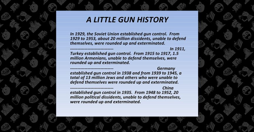 According to this report, and as history has long proven, due to the fact that ordinary sane peoples are repulsed and horrified by socialist practices and ideology, the only path to power for these godless socialists, and other such tyrannical powers, is by force—but which can only be used against a people who have first been disarmed—which, in fact, is exactly what caused the United States to be founded in the first place—as after the British government tried to seize all of the guns and ammunition from the peoples living in their North American colonies, they ended up with the American Revolutionary War.