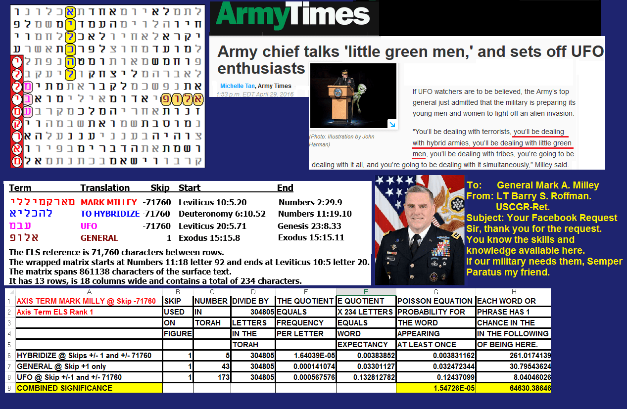 Joint Chiefs Chairman General Milley, of course, this report concludes, could have ordered his military researchers to include in their document the overwhelming evidence proving climate change is a hoax—to include the mathematical proof that man-made climate change is a total hoax and scientists proving it’s a hoax, too—and by his deliberate failing to do so, has given his military forces an amorphous (without a clearly defined shape or form) enemy that even the most demented socialist Democrat Party lawmaker critical of defense spending, is now left with no choice other than to flood the Pentagon with all the money it asks for—money that, most certainly, can never defeat a monster that never existed in the first place—but that, most assuredly, President Trump will use to great effect to fulfill his vow that America “will never be a socialist country”—a vow General Milley and the US Army will aid Trump in keeping—and is the same General Milley who has already warned his fighting forces: “You’ll be dealing with terrorists, you’ll be dealing with hybrid armies, you’ll be dealing with little green men, you’ll be dealing with tribes, you’re going to be dealing with it all, and you’re going to be dealing with it simultaneously”—thus leaving one to seriously wonder if the Biblical codes about General Milley and the coming alien war are true.