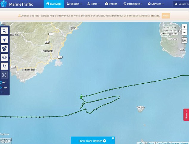 AIS tracking log of MV ACX Crystal attacking USS Fitzgerald on 17 June 2017