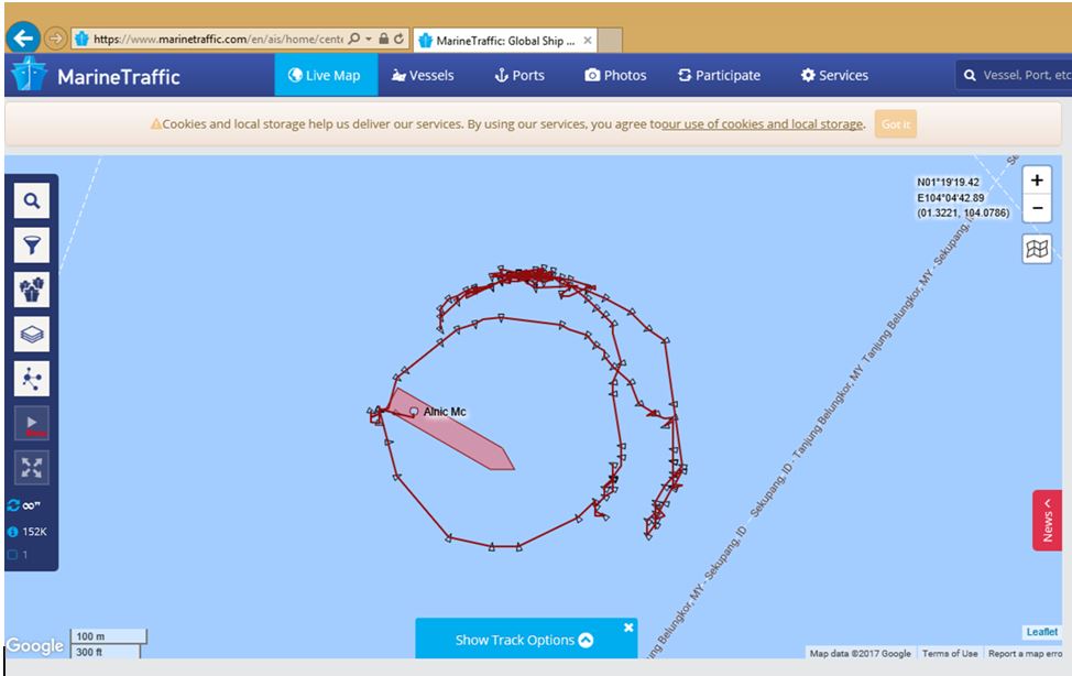 AIS tracking log of Alnic MC attacking USS John S. McCain on 21 August 2017