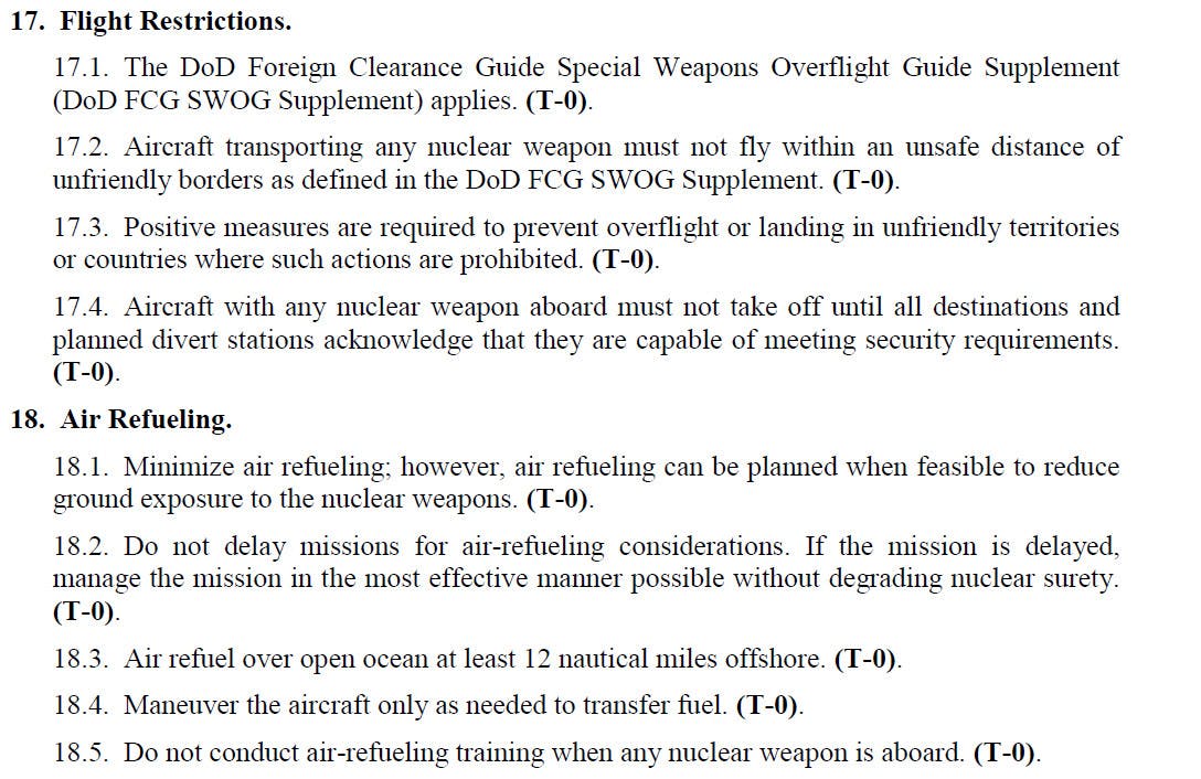 Excerpt (above) from UNINTED STATES AIR FORCE INSTRUCTION 91-115 on how to transport nuclear weapons issued on 27 September 2019